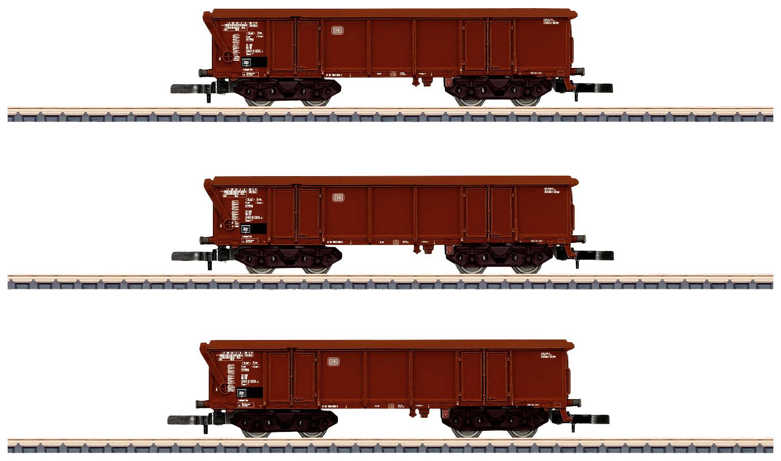 Model: 3 Niemieckie Koleje Federalne (DB) typu Tams 886 wagony z dachem rolowanym, wykonane z tworzywa sztucznego, koła tarczowe niklowane na czarno. Całkowita długość ze zderzakami ok. 174 mm.