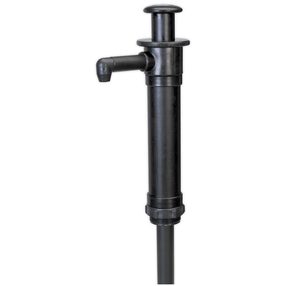 Self-priming, pistonless, displacement pump fitted with non-drip nozzle and 2"BSP adaptor and dip-tube. Suitable for oils, antifreeze, degreasants and other non-corrosive fluids. Fitted with nitrile seals. Approximately 250ml delivery per stroke. Accessory kit allows use on most containers and drums from 25-205L.