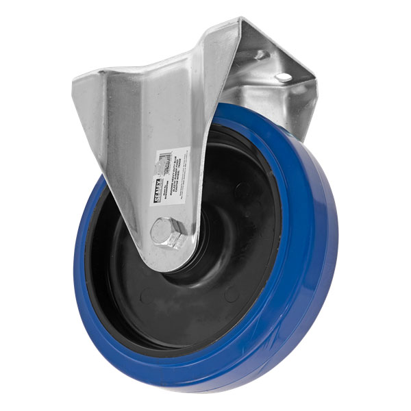 Sealey SCW3200FPEM Heavy-Duty Blue Elastic Rubber Fixed Castor Wheel Ø200mm