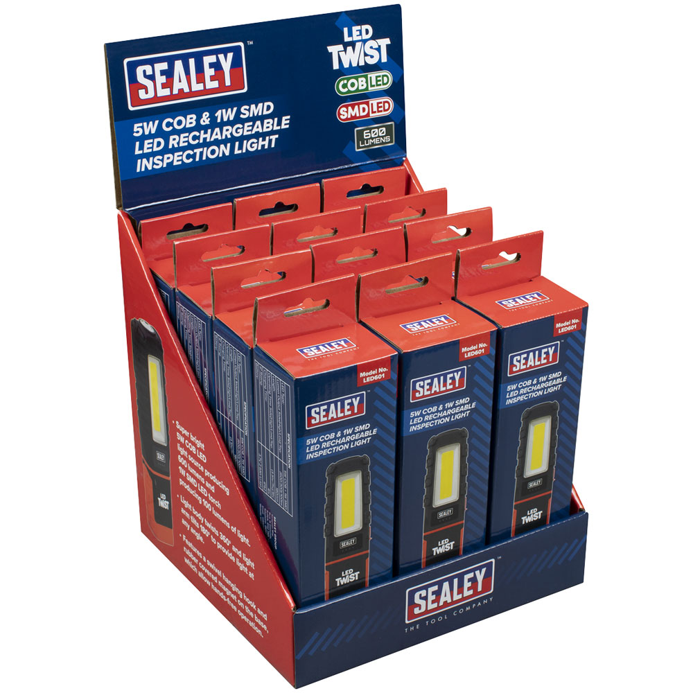 Sealey LED601DB LED Twist Rechargeable Inspection Light 5W COB & 1W SMD Box12