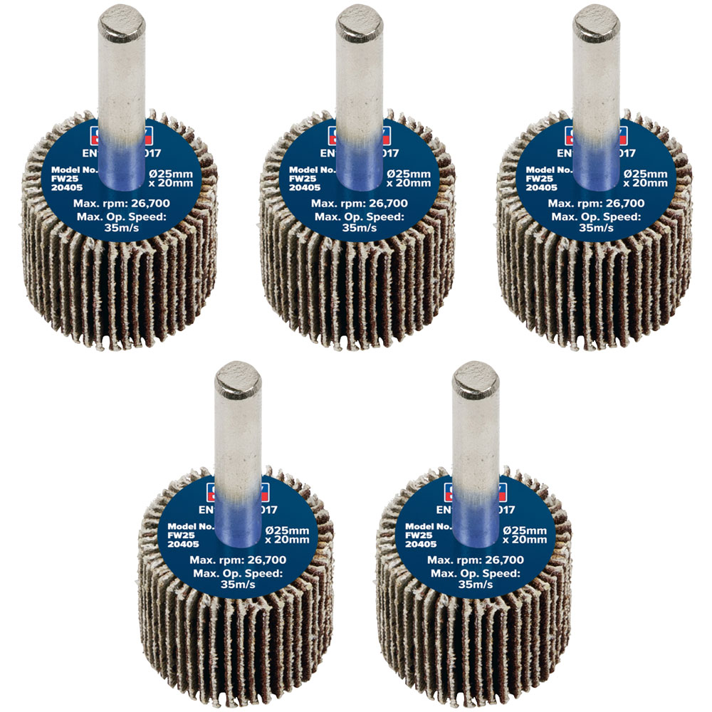 Sealey FW2520405 25 x 20mm Abrasive Flap Wheel on 6mm Shaft 40Grit - Pack of 5