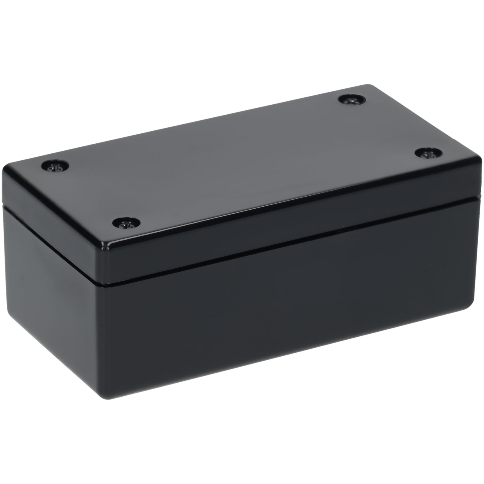 The R-TECH ABS Utility Box, moulded from Black plastic, is durable and offers a low cost, professional finish. It is designed as a small general purpose enclosure, suitable for various projects.