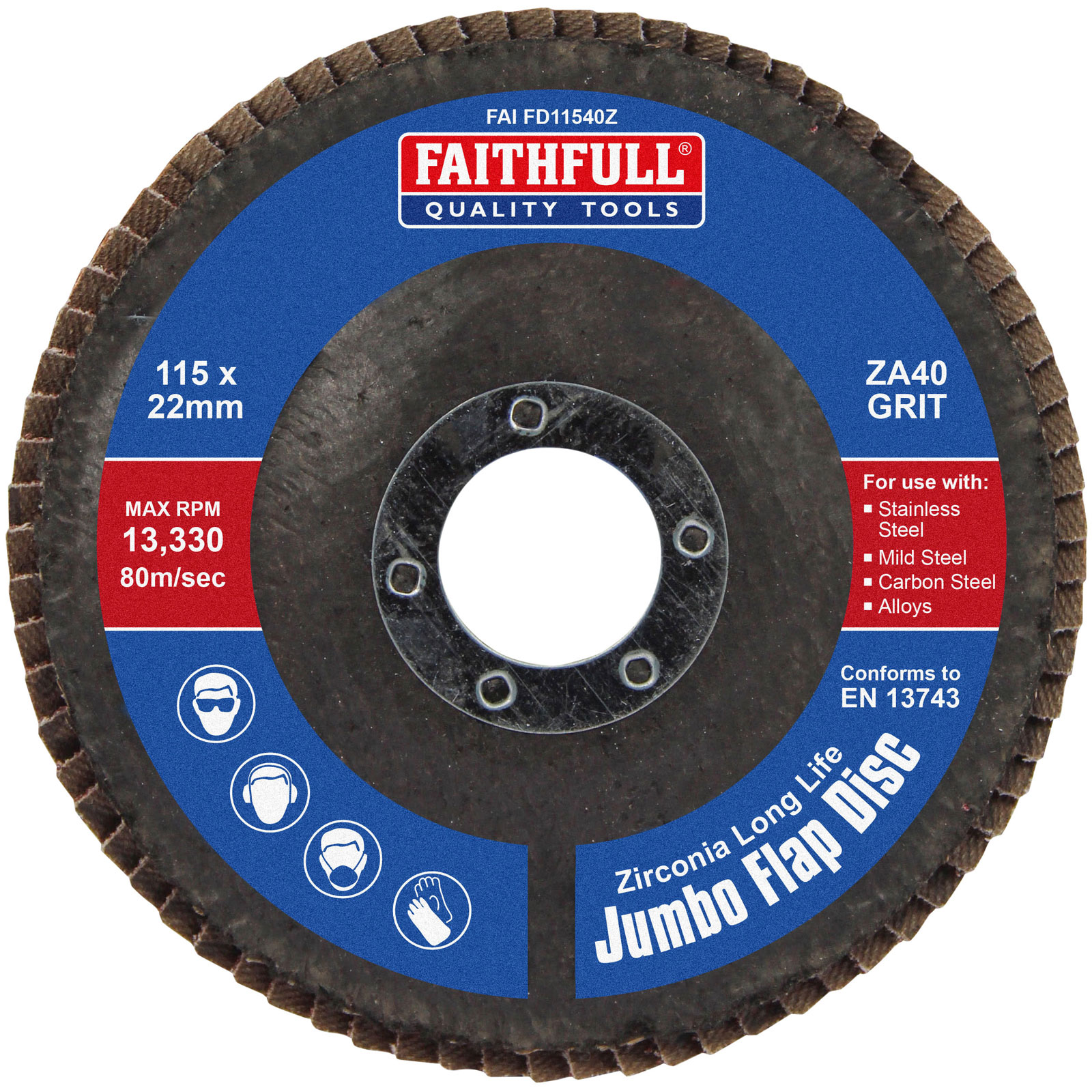 Faithfull FAIFD11540Z Zirconia Abrasive Jumbo Flap Disc A40 115mm