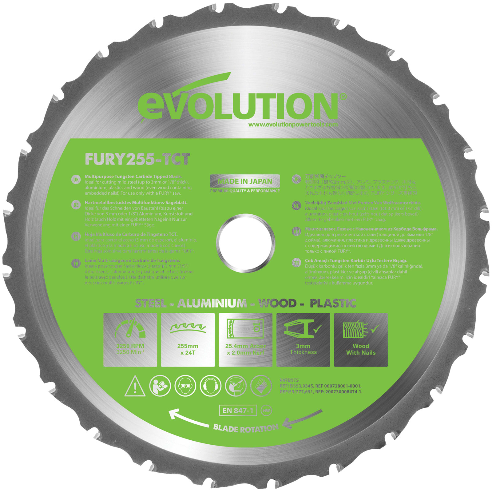 Evolution FURYBLADE255MULTI FURY MultiPurposeTCT CircularSawBlade 255x25.4mmx24T