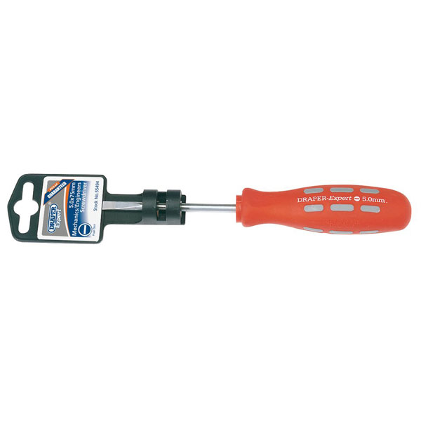 * Tip width 5mm * Blade length 75mm * Mechanics screwdrivers * Chrome vanadium steel blades * Hardened and tempered * Satin chrome plated finish * Sand blasted tips * Soft grip polypropylene handles * Handles are colour-coded for easy recognition * Draper type 55494