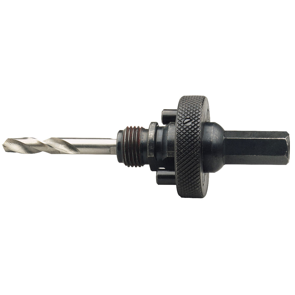For use with 32-150mm diameter holesaws. Arbor shank 7/16" with "quick release mechanism". Supplied complete with 1/4" HSS pilot drill. Display carton.