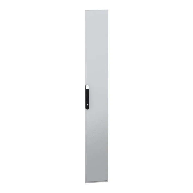 Stalowe drzwi przeznaczone do montażu w wolnostojącej, modułowej obudowie PanelSeT SFN ze stali zdekarbonizowanej do różnych zastosowań. Kompatybilne ze stalową, wolonstojącą obudową Spacial SM. Ich nominalna wysokość i szerokość wynoszą odpowiednio 2000 mm i 300 mm. Drzwi wykonane są z blachy stalowej, a uchwyt z poliamidu 6 z dodatkiem 30% włókna szklanego. Epoksydowo-poliestrowa powłoka proszkowa zapewnia gładki wygląd. Są w kolorze szarym (RAL 7035) z czarnym (RAL 9005) uchwytem. Stopień otwarcia drzwi wynosi do 120 stopni, co oznacza, że mogą być otwierane z dowolnej strony. Drzwi są wyposażone w czteropunktowy zamek z klamką, który ma 5 mm wkładkę z podwójnym prętem dla bezpieczeństwa. Ten produkt jest oznaczony ekologicznym znakiem Green Premium, co świadczy o minimalnym zużyciu substancji niebezpiecznych.