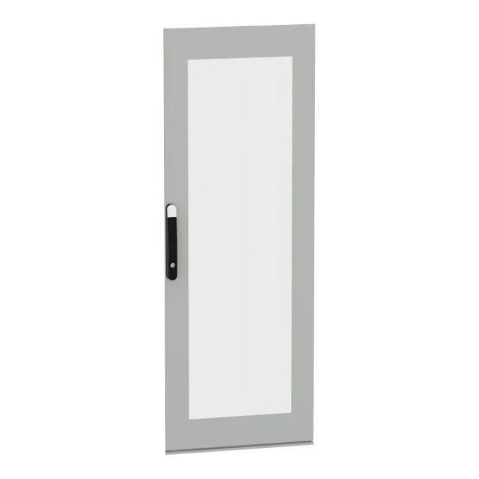 Przeszklone drzwi przeznaczone do montażu w wolnostojącej, modułowej obudowie PanelSeT SFN ze stali zdekarbonizowanej do różnych zastosowań. Ich nominalna wysokość i szerokość wynoszą odpowiednio 1600 mm i 600 mm. Drzwi wykonane są z blachy stalowej i szkła Securit, a uchwyt z poliamidu 6 z dodatkiem 30% włókna szklanego. Epoksydowo-poliestrowa powłoka proszkowa zapewnia gładki wygląd. Są w kolorze szarym (RAL 7035) z czarnym (RAL 9005) uchwytem. Stopień otwarcia drzwi wynosi do 120 stopni, co oznacza, że mogą być otwierane z dowolnej strony. Drzwi są wyposażone w czteropunktowy zamek z klamką, który ma 5 mm wkładkę z podwójnym prętem dla bezpieczeństwa. Ten produkt jest oznaczony ekologicznym znakiem Green Premium, co świadczy o minimalnym zużyciu substancji niebezpiecznych.