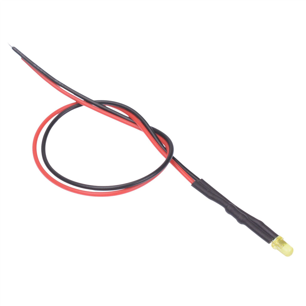 Yellow 3mm Prewired Diffused LED 20cm Cable 12V