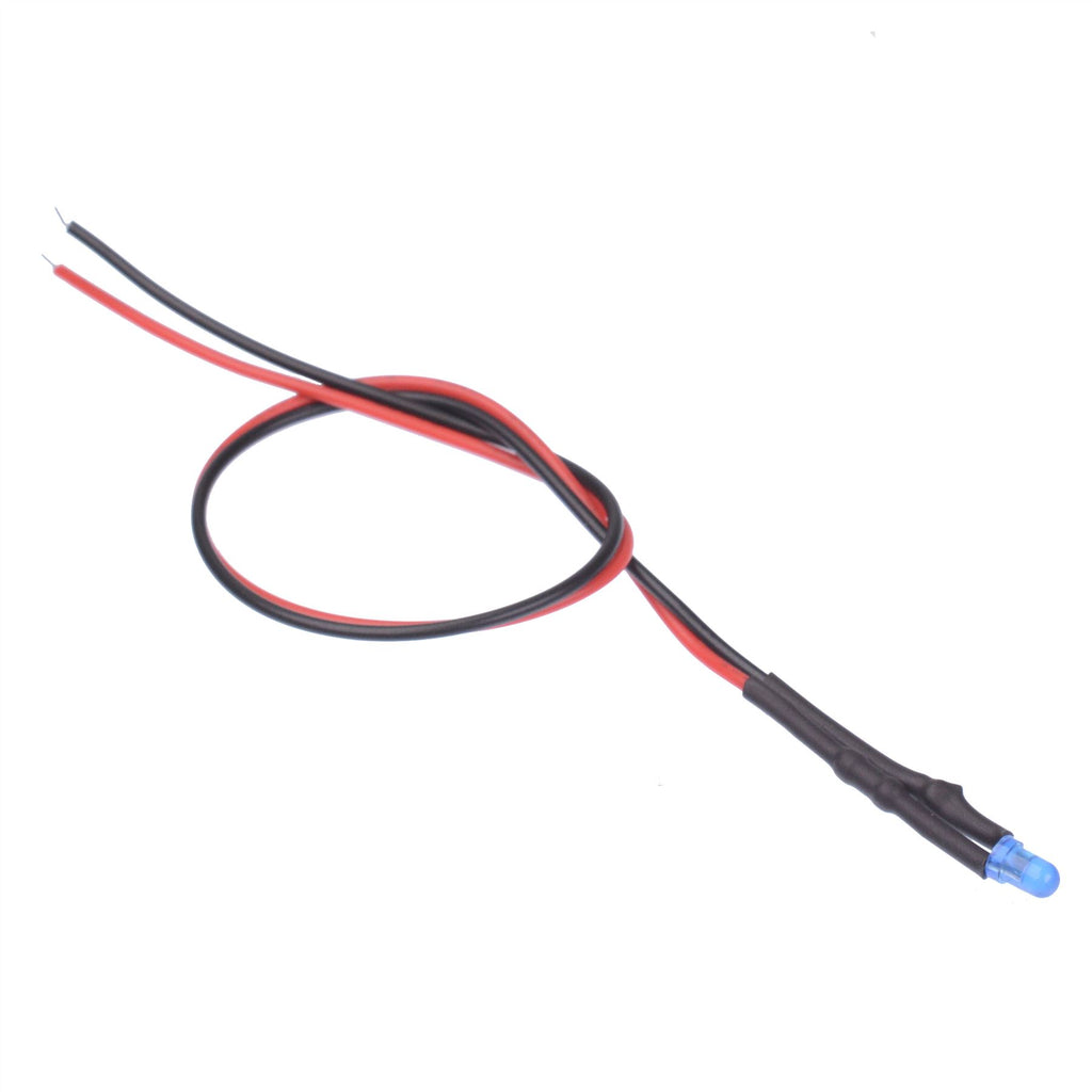Blue 3mm Prewired Diffused LED 20cm Cable 12V