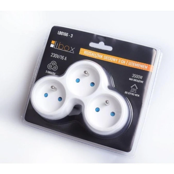 Rozgałęźnik sieciowy 1wtyk/3gniazda z uziemieniem LB0166-3 LIBOX