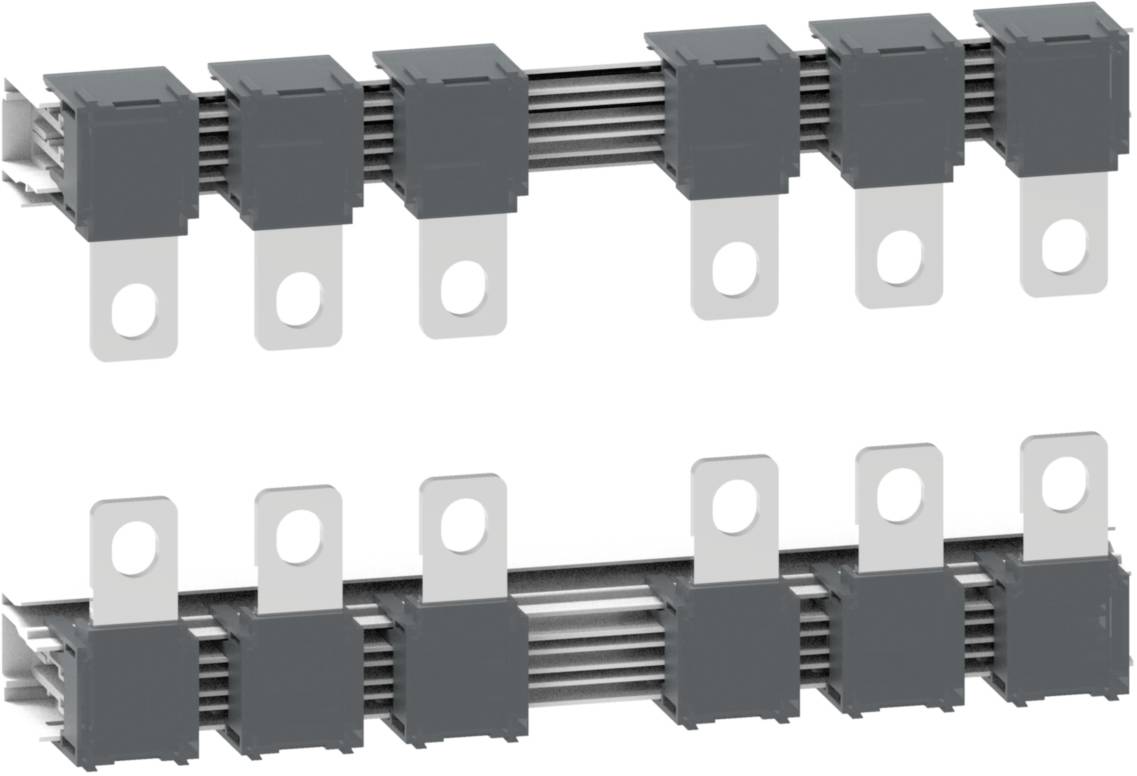 Zestaw szyn zbiorczych TeSys do stworzenia rozrusznika nawrotnego do sterowania TeSys - stycznik mocy Giga o rozmiarze 115-225. 3-biegunowy zestaw przedłużający do podłączenia zasilania lub wyjścia w celu dostosowania połączeń do warunków otoczenia. Przedłużenia zacisków można przymocować do zacisków standardowych. Można stosować dla prądów znamionowych do 225 A. Zgodność z Green Premium (RoHs/Zasięg).