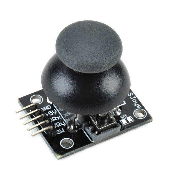 This joystick module is very useful for controlling robots, for example. Connect the x and y to the analog pins of the Arduino and you are ready to go. The joystick also registers clicks, this port can be connected to a digital pin.The voltage on the x and y pins on the module is half the input voltage when the joystick is at rest. When 5V is connected, both pins are therefore 2.5V. The voltage becomes higher or lower when the joystick is pushed up or down respectively.