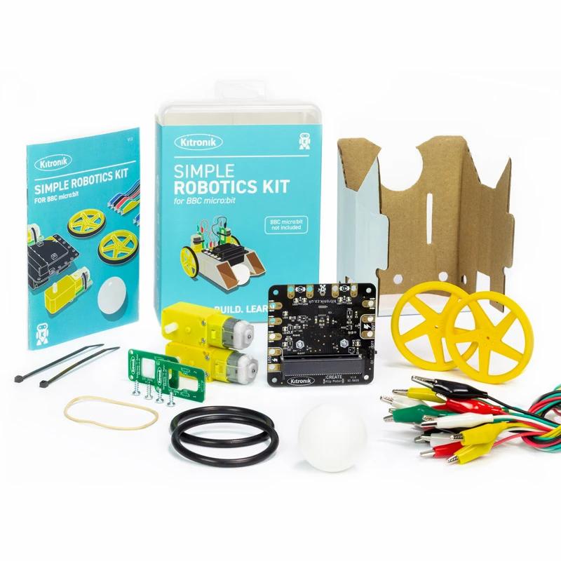 Enter the world of robotics with our Simple Robotics kit and build your own easy build microbit controlled robot. It has been designed, from the ground up, to be simple to build by even the youngest of fingers. From its one piece cardboard chassis to its clip lead connections, everything goes together in a way that is as free from frustration as possible.