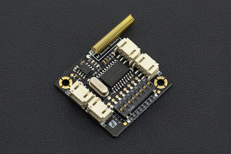 DFRobot 315MHz RF receiver module using SC2272-L4 low power decoder chip, with 8-bit three-state address coding switch, each one has three states: high level, low level, floating empty, so it supports up to 6,561 of the coding address. Modules can be used with SC2260, SC2262, PT2260, PT2262 and other coding chips, recommend our Remote Wireless Keyfob (315MHz).