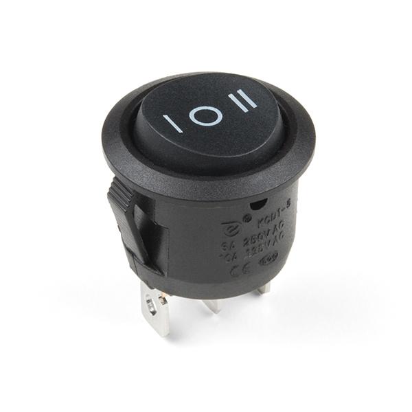 The Sparkfun Round On/Off/On Rocker Switch is a compact and versatile toggle switch, designed to handle a hefty 10A at 125VAC. This switch can be seamlessly integrated into your project, providing a sleek appearance when panel-mounted in a 20mm diameter hole.Whether you're working on a DIY electronics project, or a professional-grade device, this Rocker switch is an excellent choice. It's not only functional but also adds an aesthetic touch to your project. Its round design and smooth operation make it easy to use and visually appealing.One of the key benefits of this Rocker switch is its high capacity. It's rated for up to 10A at 125VAC, making it suitable for a range of applications. This robust performance doesn't compromise its compact size, making it a great choice for projects where space is at a premium.Moreover, the Sparkfun Round On/Off/On Rocker Switch is designed for easy installation. With a requirement of just a 20mm diameter hole for panel mounting, it can be fitted into your project with minimal effort. This ease of installation, coupled with its high performance, makes this switch a reliable and convenient option for all your switching needs.With its unique blend of functionality, aesthetic design, and robust performance, the Sparkfun Round On/Off/On Rocker Switch is more than just a switch. It's a component that will enhance your project's functionality and appearance.