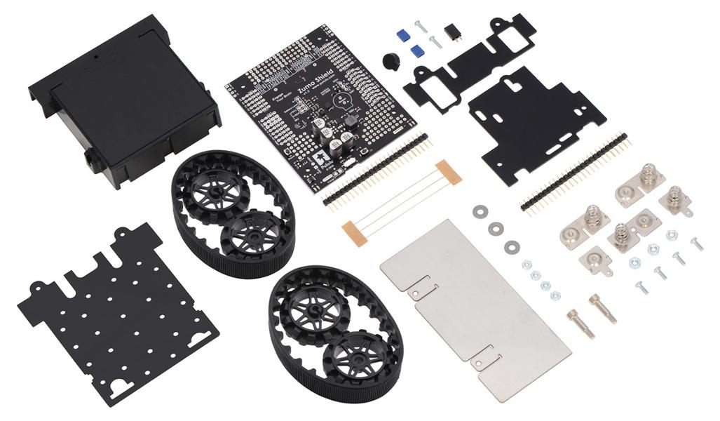 The Zumo Robot Kit for Arduino (No Motors) is a comprehensive package that equips you with the majority of components required to create your own Arduino-controlled Zumo robot. The kit is inclusive of a Zumo Shield for Arduino, a Zumo chassis kit, and a Zumo blade. To complete your Zumo robot, you will additionally need a pair of micro metal gearmotors, four AA batteries, and an A-Star 32U4 Prime or Arduino (sold separately). Please note that this product is a kit and assembly, which includes soldering, is necessary.The Zumo Robot Kit for Arduino is a versatile tool that can be used for a wide range of applications. Whether you're a hobbyist looking to delve into the world of robotics, an educator seeking an engaging teaching tool, or a professional in need of a compact, capable robot for testing algorithms, this kit serves as a reliable platform.The Zumo Shield for Arduino, a key component of the kit, allows for direct interfacing with Arduino controllers, providing a streamlined approach to programming and control. The Zumo chassis kit, on the other hand, offers a robust, compact structure for your robot. The Zumo blade included in the kit is designed to provide your robot with the ability to push objects out of its path, making it ideal for sumo wrestling competitions or navigating cluttered environments.One of the standout features of the Zumo Robot Kit for Arduino is its flexibility. With the addition of micro metal gearmotors and an Arduino or A-Star 32U4 Prime, you can customize the performance and functionality of your robot to suit your specific needs. This adaptability, coupled with the kit's comprehensive array of components, makes the Zumo Robot Kit for Arduino an excellent choice for those looking to explore the fascinating world of robotics.