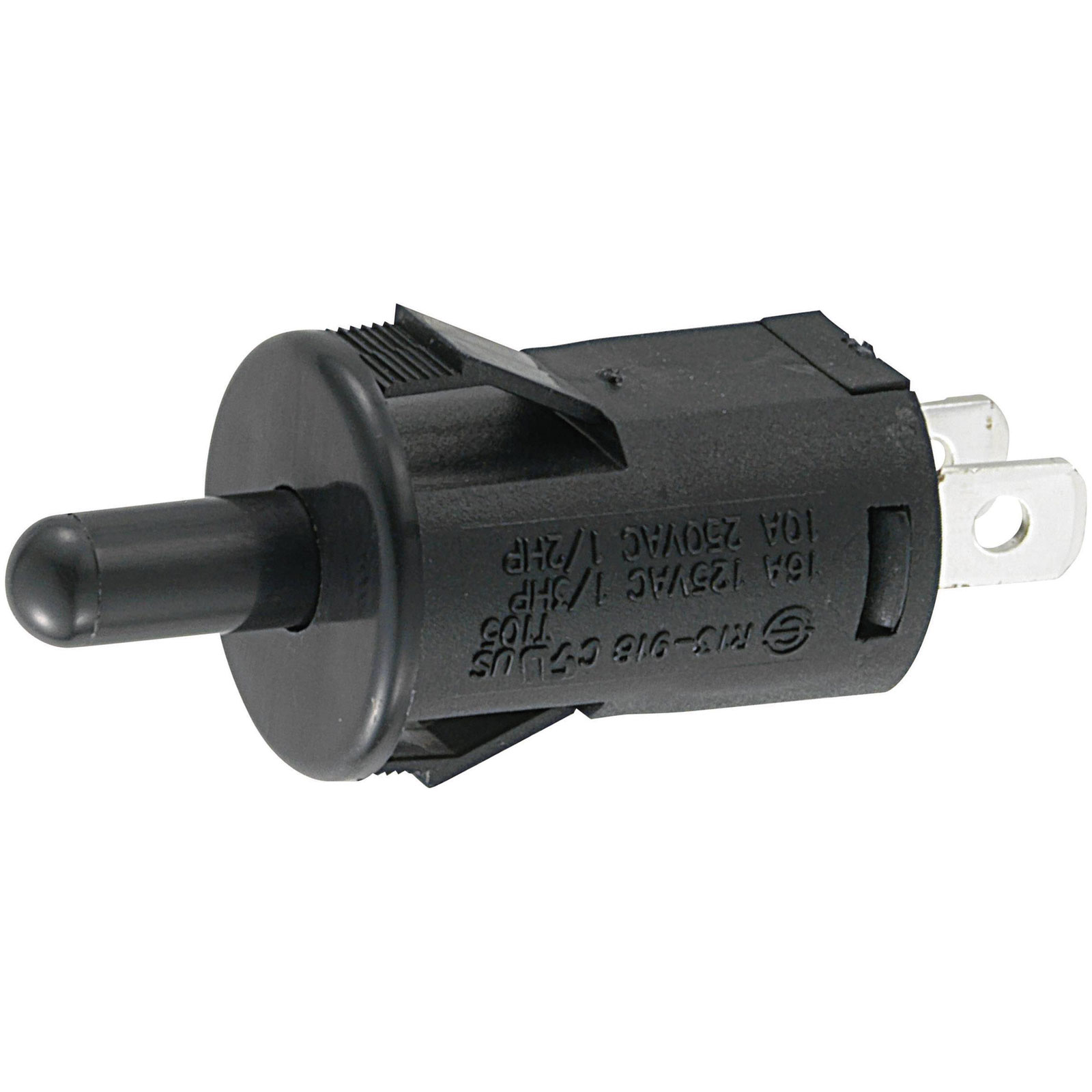 The TruComponents 78-2119 pushbutton is a black panel mount switch with a single pole, single throw (SPST-NO) configuration for momentary action. Rated for 250V AC and 10A, it is suitable for switching tasks, in which an open door is to be registered or as "Registration" for an Alarm system. Commonly used in control panels and equipment interfaces. Its rugged construction and reliable operation make it suitable for industrial and commercial applications.