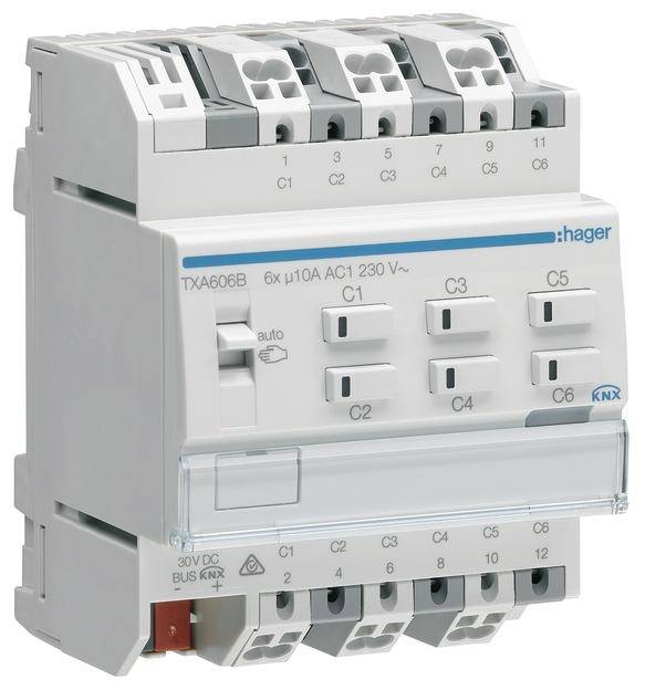 Siłownik przełączający/żaluzjowy 6/3-krotny KNX easy, 10A. Opis systemu KNX System KNX jest elastycznym, kompatybilnym w górę systemem magistrali instalacyjnej (dawniej EIB = European Installation Bus) do stosowania w technologii systemów budynkowych. Jest specjalnie dostosowany do specjalnych wymagań w zakresie komfortu, możliwości elastycznego wykorzystania przestrzeni, połączenia centralnego i zdecentralizowanego sterowania, inteligentnego łączenia branż i systemów, opcji komunikacyjnych, kompatybilności środowiskowej, minimalizacji kosztów energii i eksploatacji, a także funkcje wyświetlania, raportowania i obsługi, monitorowania i wykrywania. Dzięki zdecentralizowanej strukturze umożliwia zarządzanie operacyjne specyficzne dla danego budynku w budynkach mieszkalnych i użytkowych, niezależnie od wielkości systemu. Szczególnie korzystne jest stosowanie dostępnych na rynku rozdzielaczy obwodów i skrzynek instalacyjnych. Wszyscy uczestnicy autobusu połączeni są linią autobusową zgodną z wytycznymi KNX (Stowarzyszenie Konnex) (np. JY(St)Y 2x2x0,8). Ponieważ kabel magistrali zgodnie z normą DIN VDE 0100 można układać bezpośrednio obok linii energetycznych, prowadzenie kabla jest znacznie uproszczone. W porównaniu z publicznymi systemami telekomunikacyjnymi system magistrali ze wszystkimi komponentami należy traktować jak system wysokiego napięcia. Podobnie jak w przypadku instalacji wysokiego napięcia, prowadzenie kabli może być liniowe, gwiaździste lub drzewiaste. Ogólnie dopuszczalne jest łączenie różnych tras kablowych. Okablowanie odbywa się w technologii dwuprzewodowej, przy czym preferowane są przewody w kolorze czerwonym (dla „+”) i czarnym (dla „-”). Przewody biały i żółty służą jako rezerwowe. Uczestnicy są zasilani napięciem magistrali (niskie napięcie bezpieczne SELV 30 V DC) poprzez linię magistrali. Jednocześnie służy do przesyłania informacji wymienianych pomiędzy uczestnikami autobusu. Dla linii magistrali nie jest wymagany rezystor terminujący. Najmniejsza jednostka