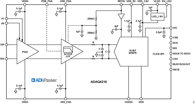 * A high precision 16-bit, 2MSPS successive approximation register (SAR) ADC.