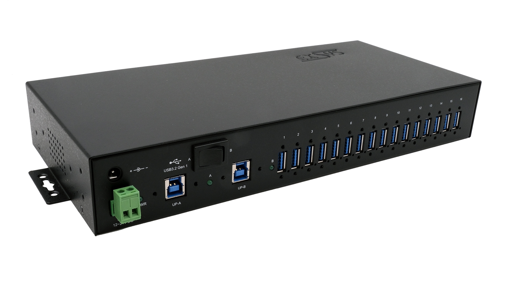 Exsys Metal Hub może być używany dla maksymalnie szesnastu urządzeń końcowych. Koncentrator zapewnia szesnaście przykręcanych portów USB 3,2 Gen 1 z ochroną przeciwprzepięciową ESD 15KV.