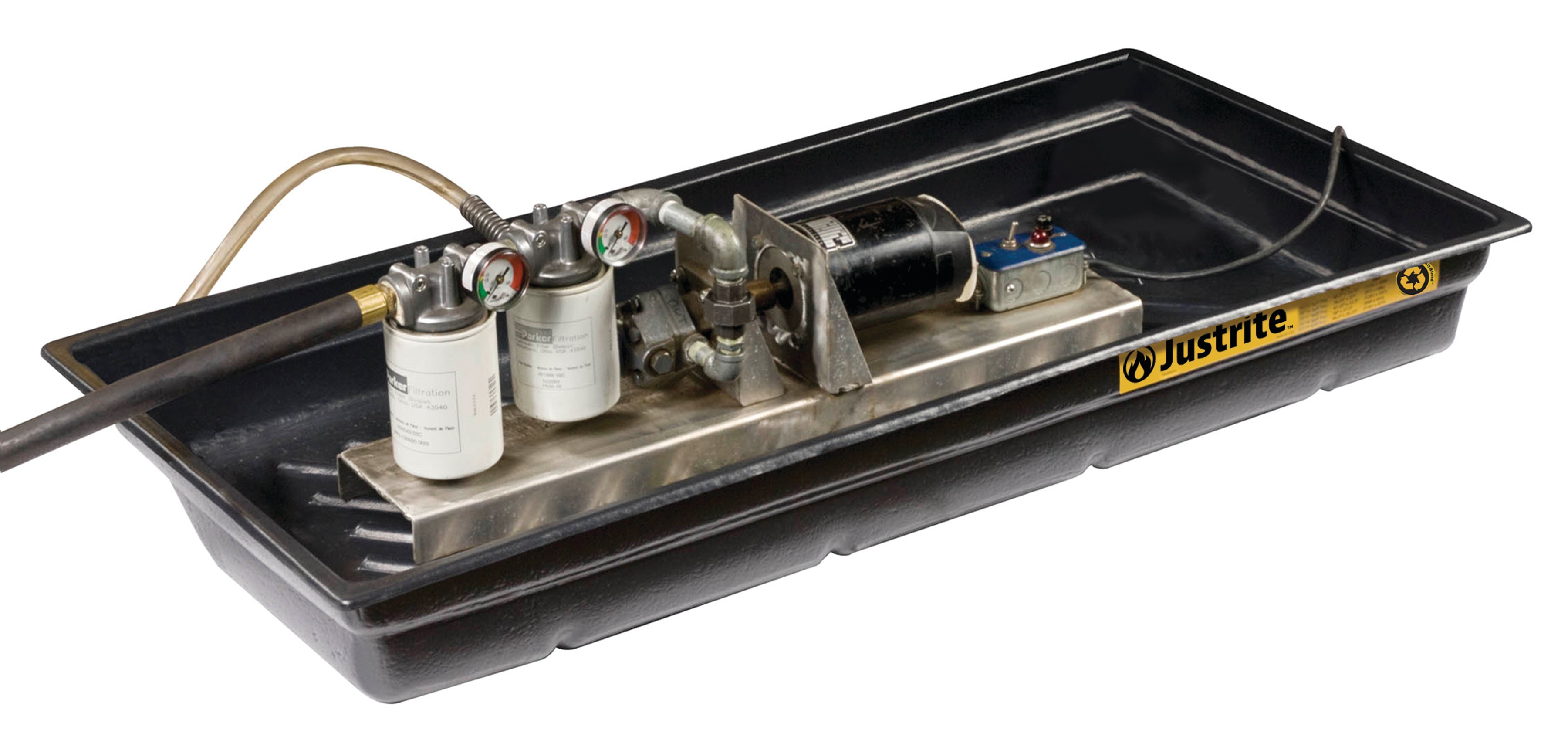 Tacki na rozlane płyny Justrite oferują lekką, niskoprofilową konstrukcję do kontroli rozlanych płynów na małą skalę.