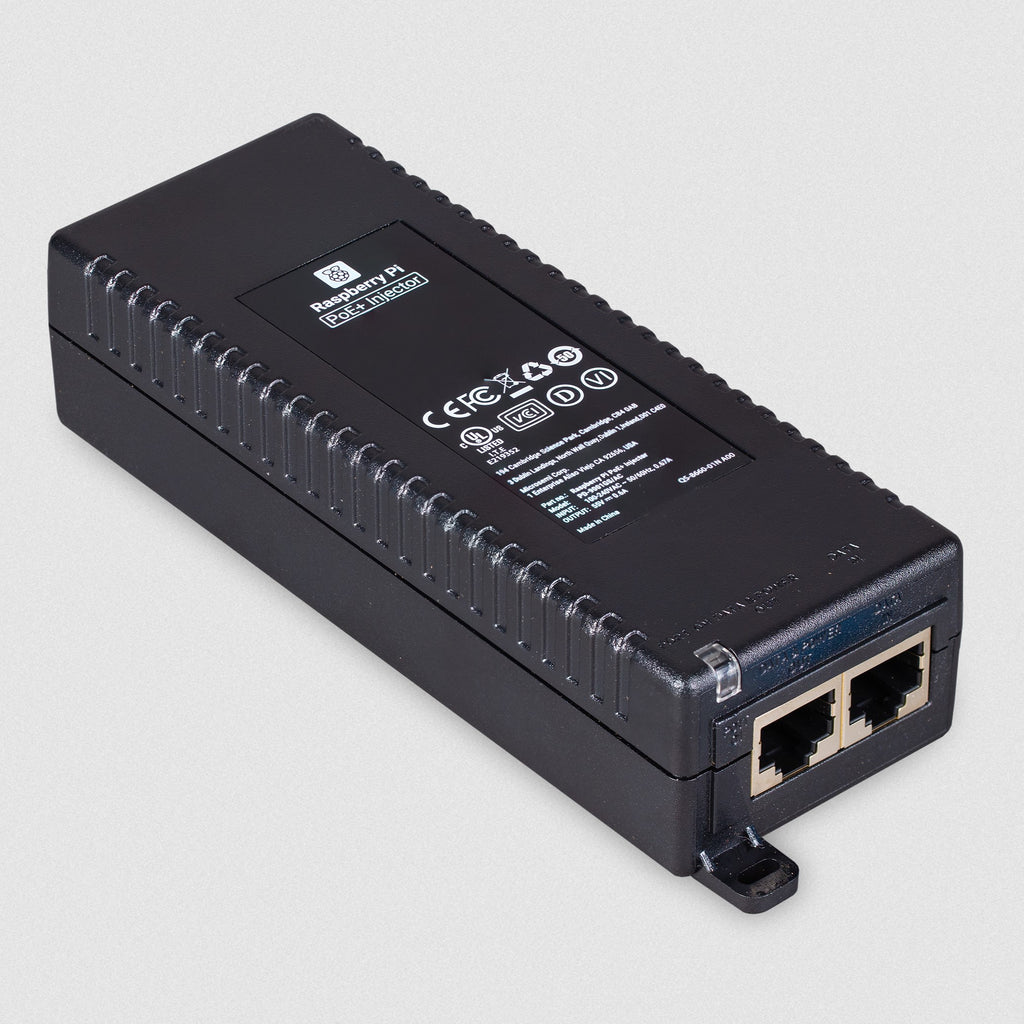 A single port 30W Injector enabling Power Over Ethernet supply to PoE enabled Raspberry Pi boards.