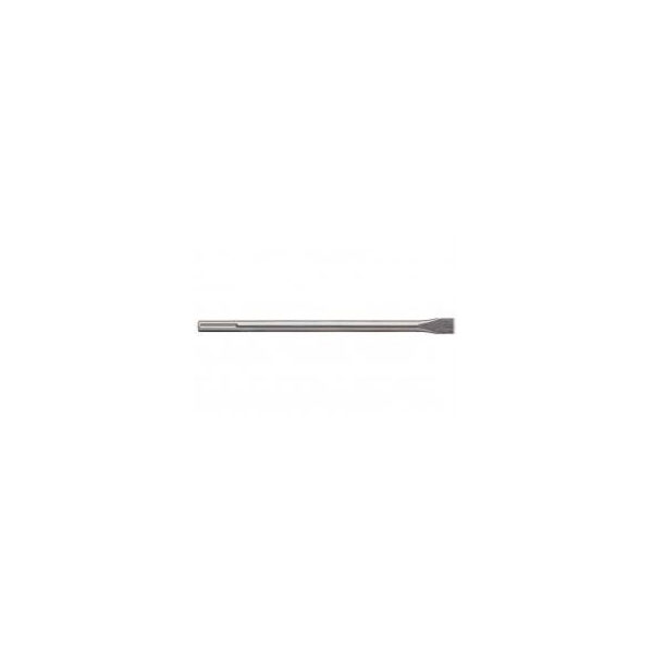 Metabo's flat chisel, model 623464000, features a 25 mm wide blade and has a total length of 400 mm. This SDS-Max compatible tool is ideal for precise demolition and material removal tasks. It is commonly used in construction and renovation projects for chiselling and breaking up concrete.