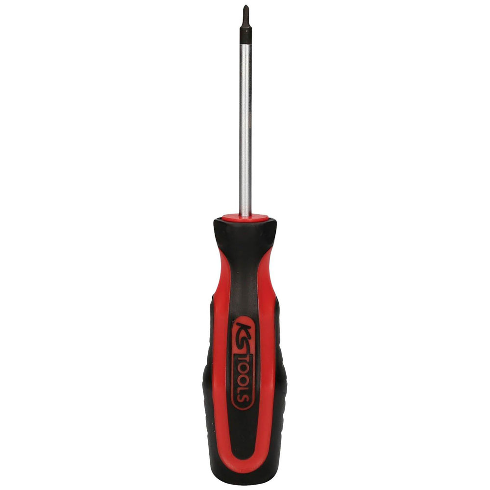 The KS Tools 159.1255 Tri-wing screwdriver, made by KS Tools, features a robust design for durability and precision. It is commonly used in electronics repair and other applications requiring tri-wing screws. This specific tool is essential for tasks involving delicate components, ensuring a secure fit and easy handling.
