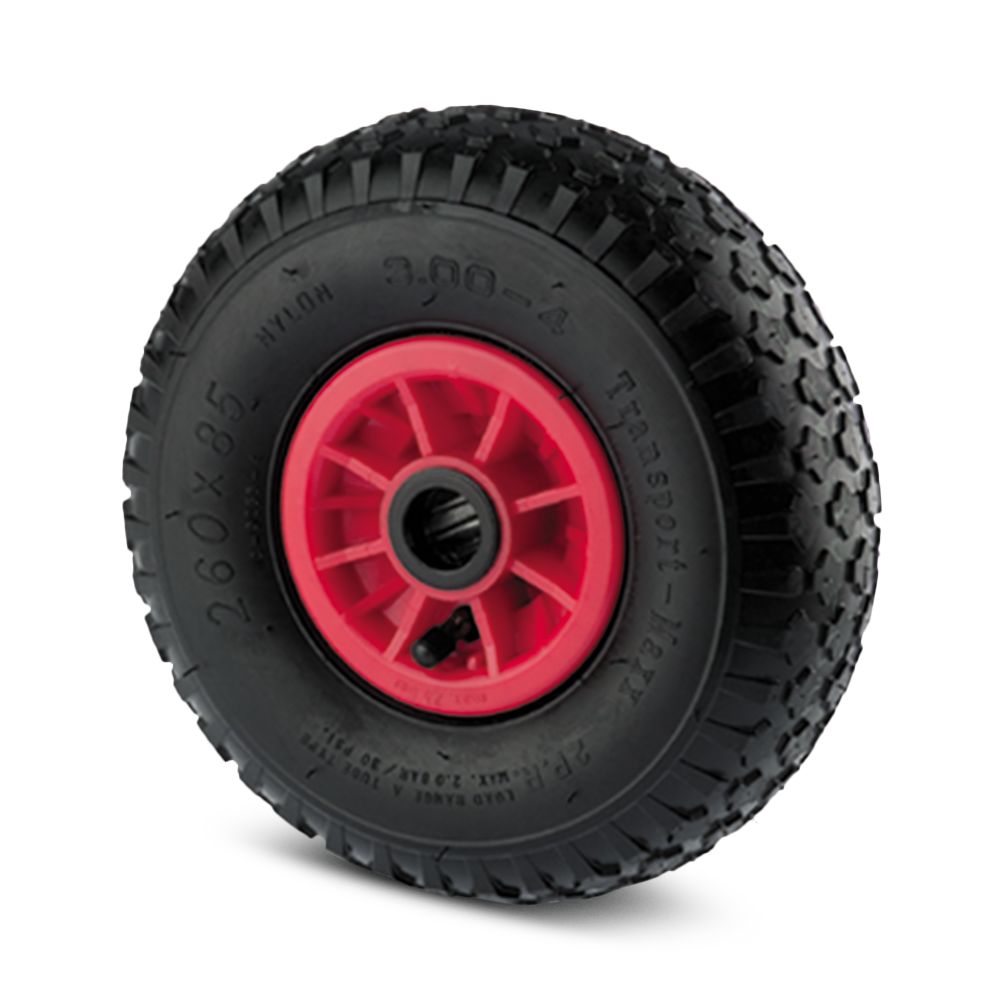Kółko do wózka, Pneumatyczne, Polipropylen, Czarny, Czerwony, obc.: 75kg, śred.: 260mm, szer.: 85mm