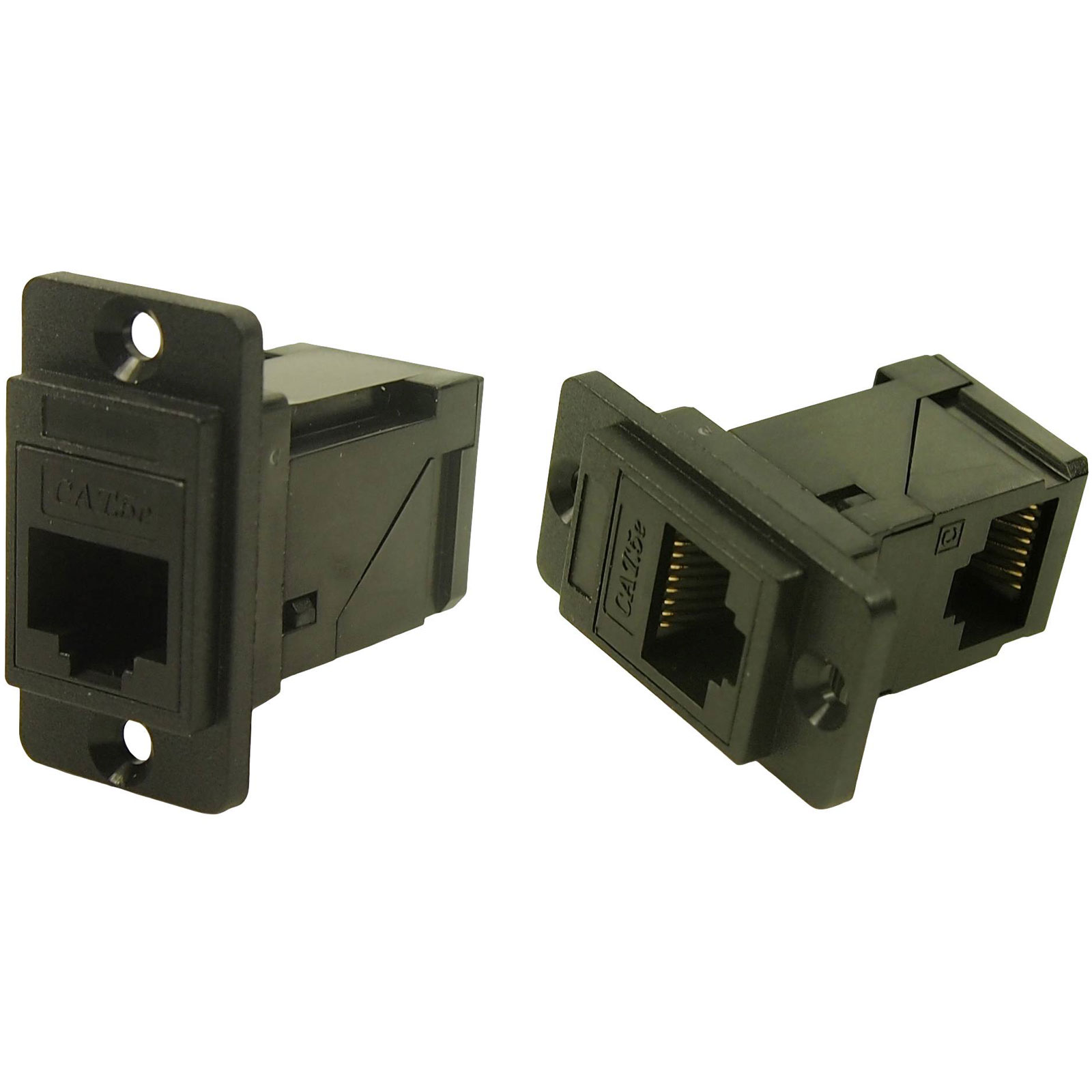 The Cliff CP30751 is a black RJ45 socket module designed for network connectivity. It features dual Ethernet ports suitable for Cat 5, Cat 6, and Cat 7 cables. This adapter is commonly used in professional audio and video equipment, offering a reliable connection solution.