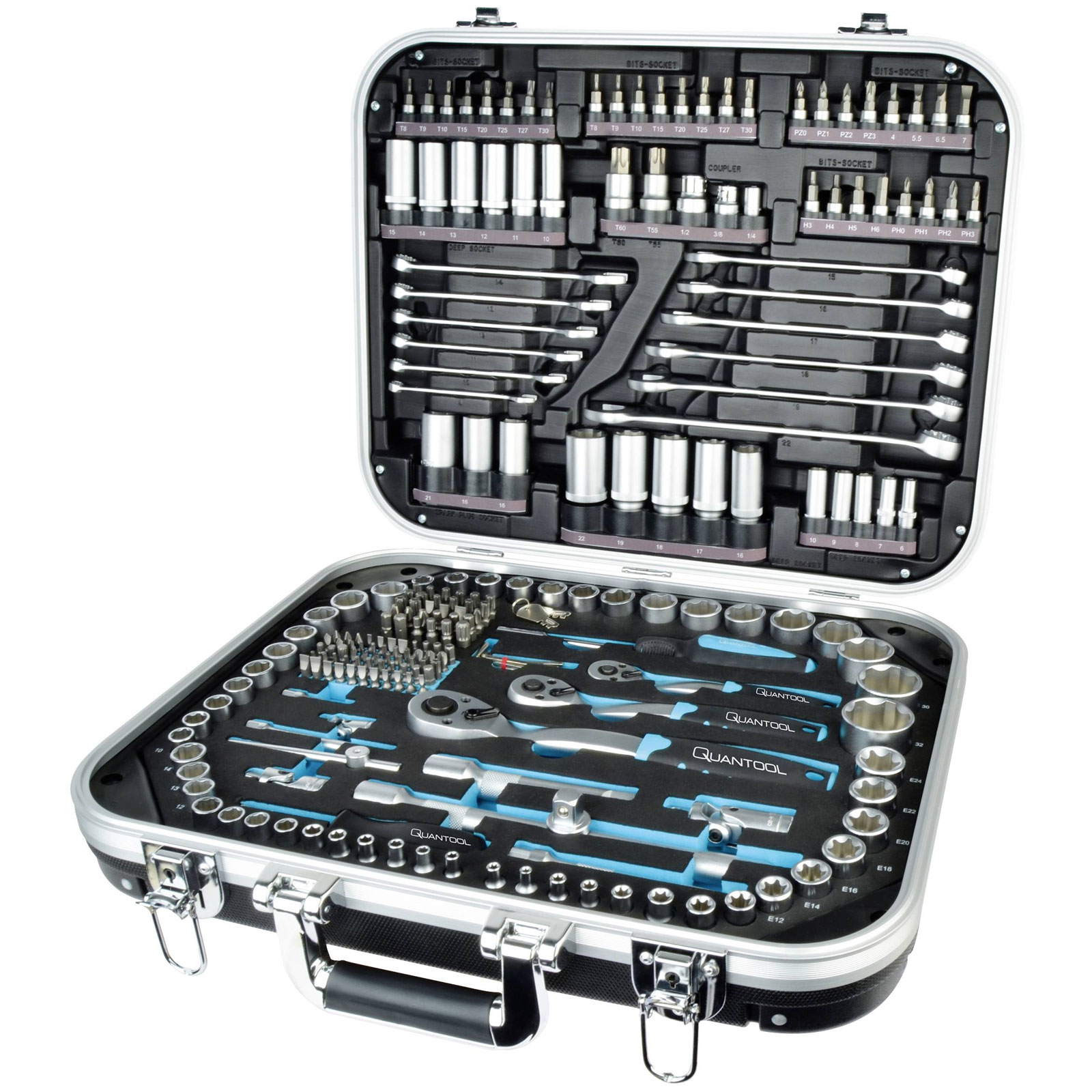 The Brüder Mannesmann QUANTOOL Bit Set Q25000 is a comprehensive 226-piece collection of handheld tools, including a range of screwdriver bits and socket wrench bits in sizes 1/4", 1/2", and 3/8". This extensive ratchet set is ideal for various repair and assembly tasks, making it suitable for both professional and DIY applications. Reliable and versatile, the set is an essential addition to any toolbox.