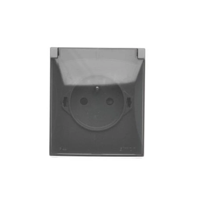 Simon Aquaclick Gniazdo natynkowe, pojedyncze z uziemieniem, klapka transparentna z przesłonami, IP44 ciemnoszary ACGZ1CZ/18A