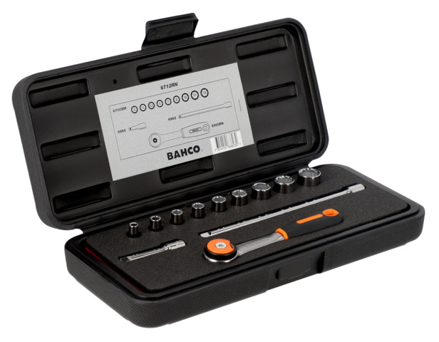 Zestaw nasadek Bahco zawiera nasadkę 6700SM 1/4 cala z profilem sześciokątnym w rozmiarach metrycznych 4, 5, 5.
