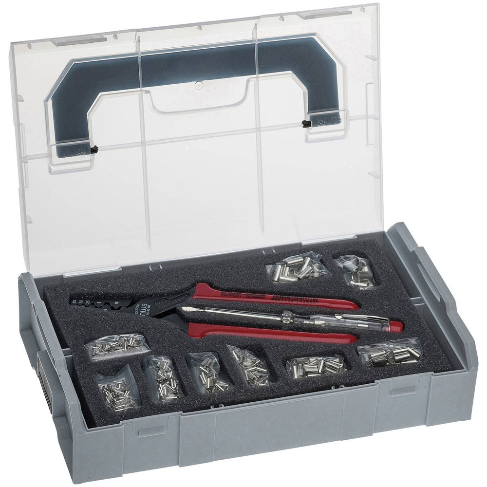 The NWS 338-22 is a durable crimping tool designed for precise wire connection, featuring an included voltage tester for safe electrical work. Known as a squeezer, this tool comes with a comprehensive ferrule set and a convenient case for easy transport. It is ideal for electricians and technicians who require reliable and efficient wire termination solutions.