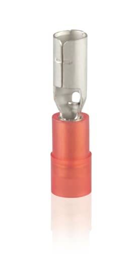RD1.5-39NDC Krzyżak kablowy z okrągłym gniazdem w izolacji poliamidowej. 0,5-1,5 mm² kolor czerwony cynowany mosiądz żeński Ø 4 mm podwójne zaciskanie PU 100