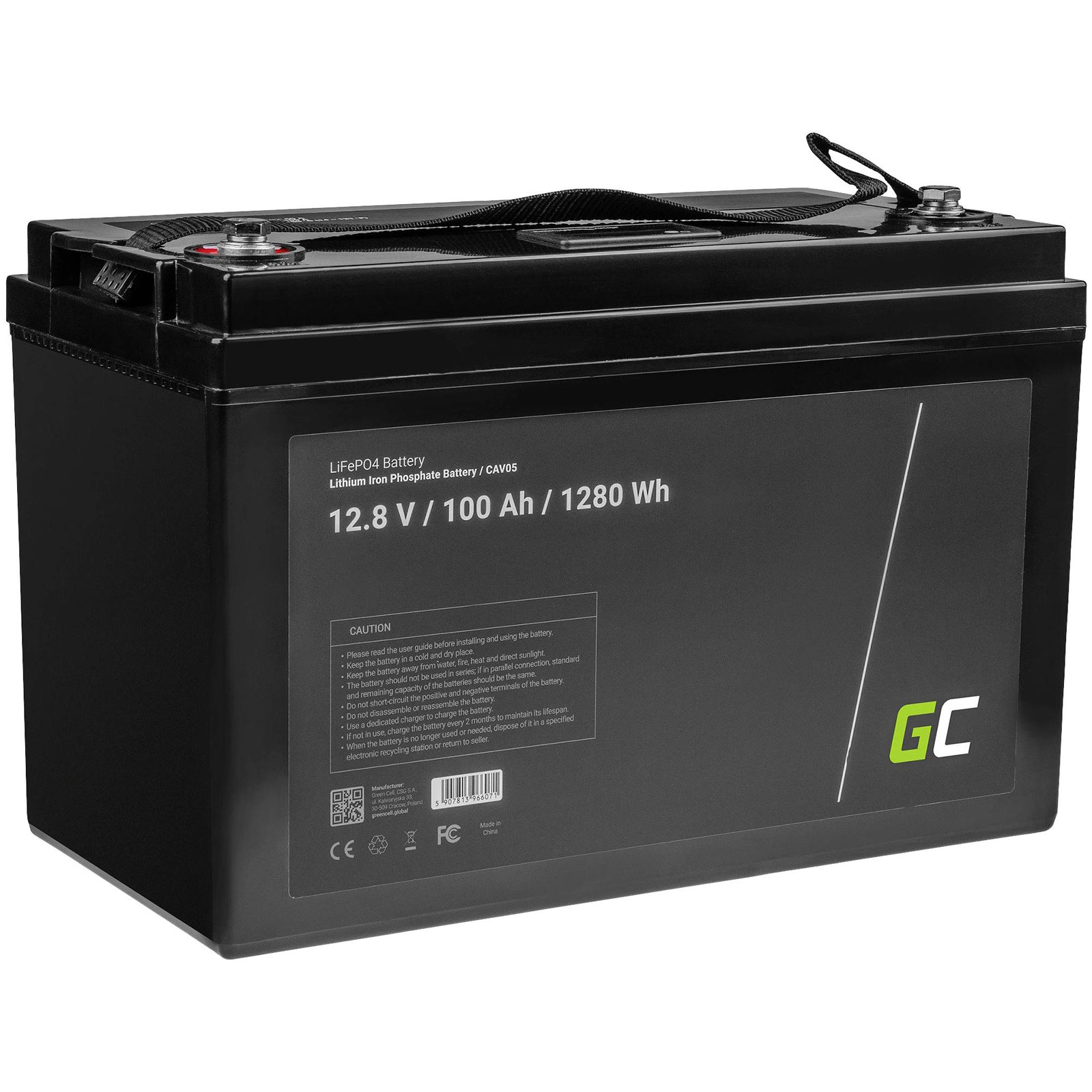 Green Cell CAV05 Battery LiFePO4 12.8V 100Ah Durable Lightweight Efficient