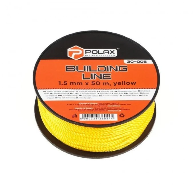Sznur murarski Polax do prac budowlanych 1,5 mm x 50 m, żółty (30-005)