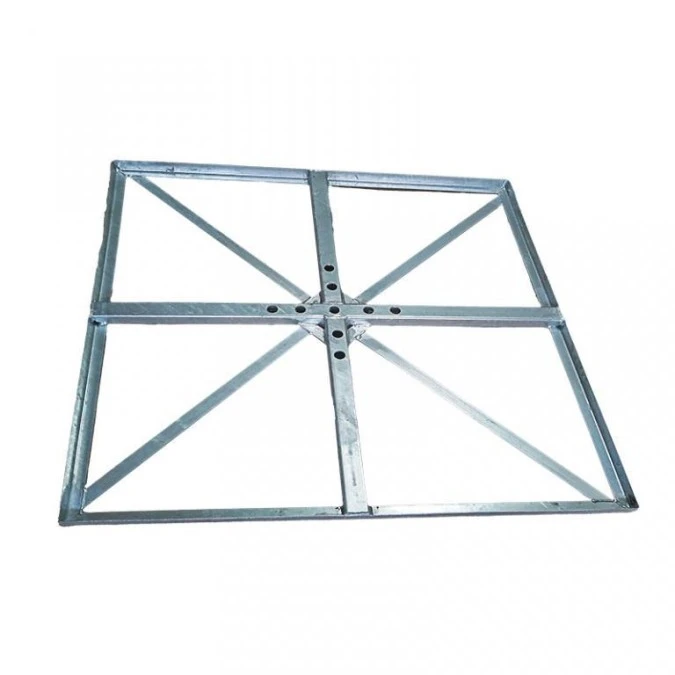 Materiał: stal ocynkowana ogniowo Zastosowanie: instalacja odgromowa, jako podstawa masztu balastowego ze stopą na 4 płyty chodnikowe betonowe Wymiary: 110x110cm wykonana z kątowników 30x30x4 mm oraz ceowników 50x38x4 mm Zaletą podstawy jest cynkowanie ogniowe po spawaniu. Cena dotyczy 1 sztuki.