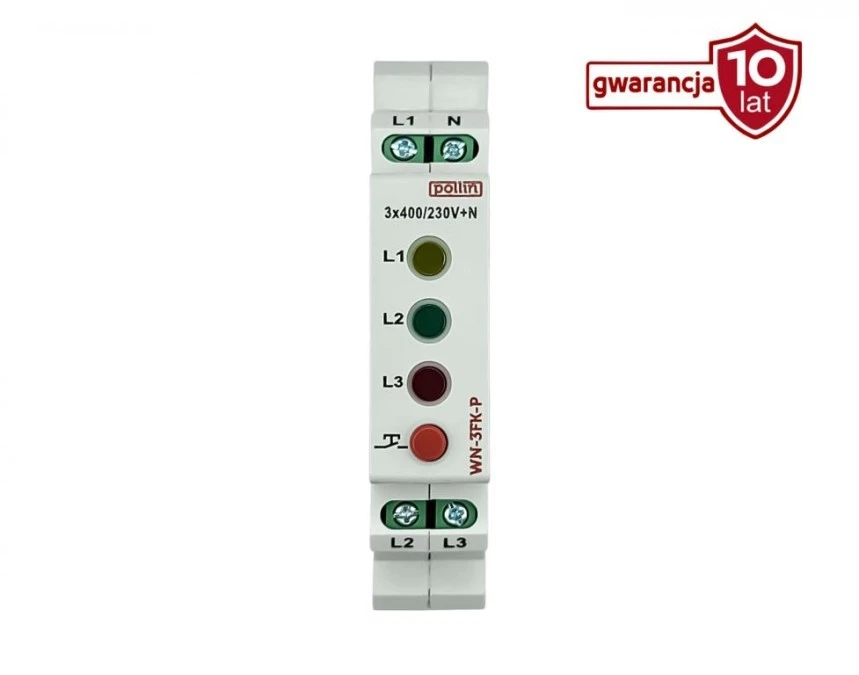 Lampka modułowa 3-fazowa żółta/czerwona/zielona 10-250V AC przycisk TEST WN-3FK-P
