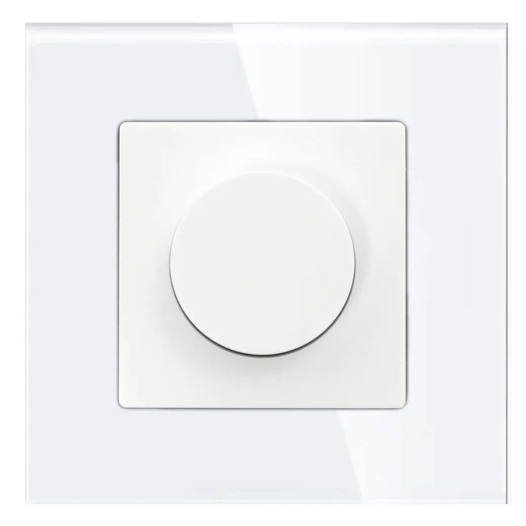 Ściemniacz dimmer 500W, 80W dla LED, regulator obrotów wentylatora - szklana ramka - biały - TAWOIA Glass