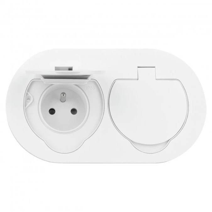 Hermetyczne gniazdo elektryczne podwójne, owalne, IP55, 2x2P+Z(French), białe,OR-GM-9046/W
