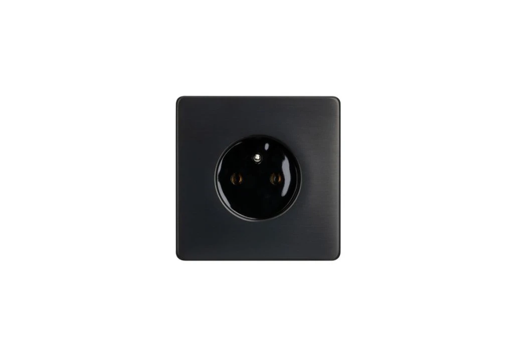 Gniazdko elektryczne czarne pojedyncze ramka stal szczotkowana PVD Black GN-SNPBL01C