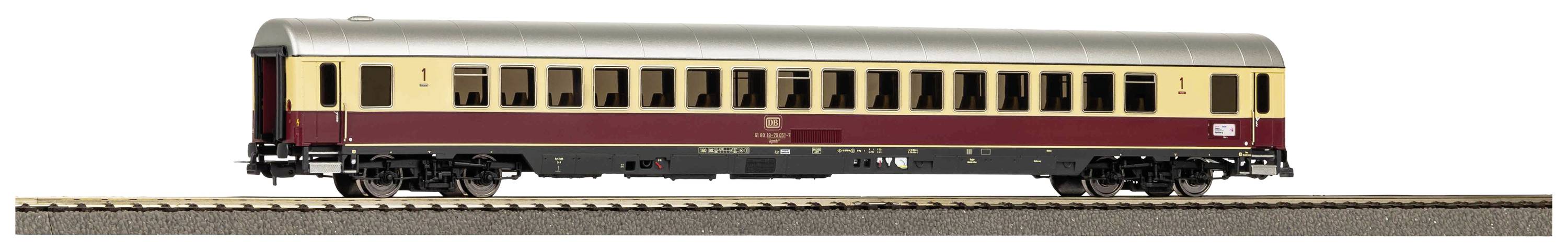 Samochód osobowy I klasy w prototypowym malowaniu TEE Merkur DB z epoki IV. Samochód zachwyca precyzyjnym odwzorowaniem proporcji oryginału, licznymi dołączonymi częściami, realistycznym odwzorowaniem wózków oraz pozbawionymi smug szybami, przez które widać szczegółowe wnętrze. Model przygotowany jest do łatwej doposażenia w oświetlenie wewnętrzne.