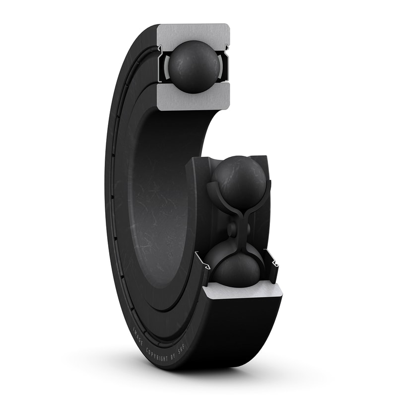 Jednorzędowe łożysko kulkowe skośne SKF przenosi obciążenia promieniowe i osiowe działające jednocześnie, przy czym obciążenie osiowe działa tylko w jednym kierunku.