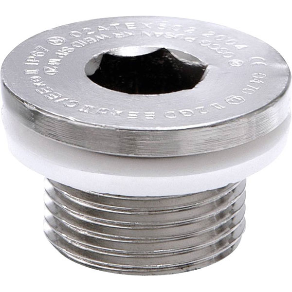 For a secure locking of unused thread or pass-through holes. Approved according to ATEX and IECEx.