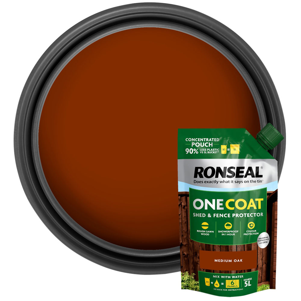 Ronseal KCB.8174503.40100.73 One Coat Shed & Fence Refill Pouch Medium Oak 950ml