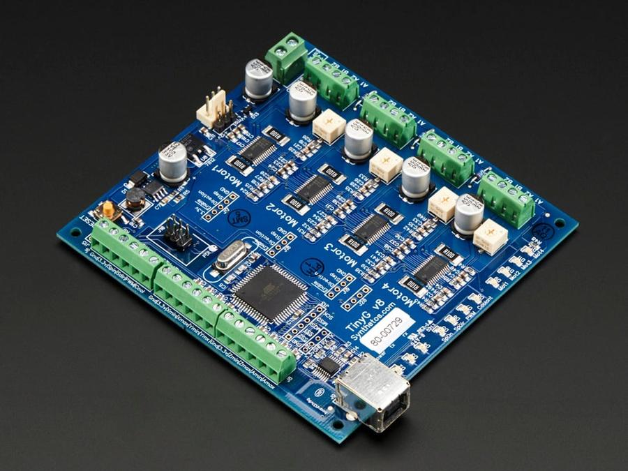 The TinyG project delivers a high-performance CNC controller in a compact, USB-friendly package. Offering 6-axis control with refined motion precision, it supports both linear and rotary configurations, making it adaptable for complex movement requirements.Key specifications include an integrated Atmel ATxmega192 microcontroller and four TI DRV8811 stepper motor drivers, unified on a compact 4-inch board. Operate effortlessly using G-code inputs directly via USB, thanks to the onboard interpreter.Enjoy smooth and rapid motion transitions with its constant jerk motion planning, enhancing performance and workflow efficiency. Tailor axis synchronization with capabilities like dual gantry setups, fitting XYYZ or XYZC configurations among others.With a sophisticated step-pulse generation system operating at 50 kHz, experience seamless precision in dynamic applications. TinyG is your all-in-one solution for small to medium motor control needs, perfect for applications that demand high controllability and integration.