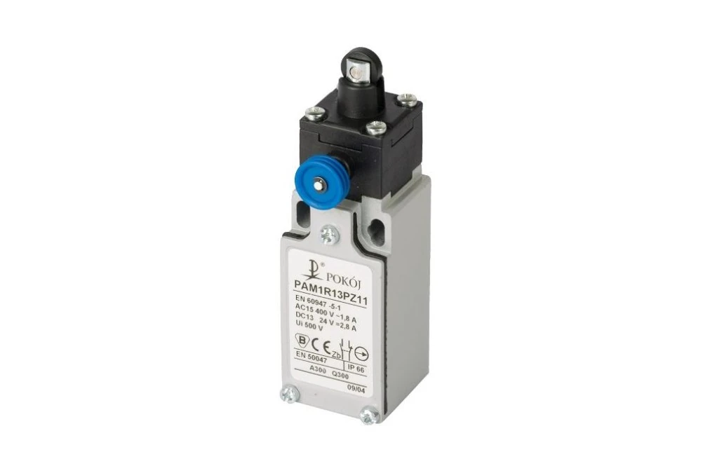 Wyłącznik krańcowy 2R wolnoprzełączający popychacz stalowy z rolką z tworzywa Ø10,5 z resetem PAM1R13PW02 A37-4R24