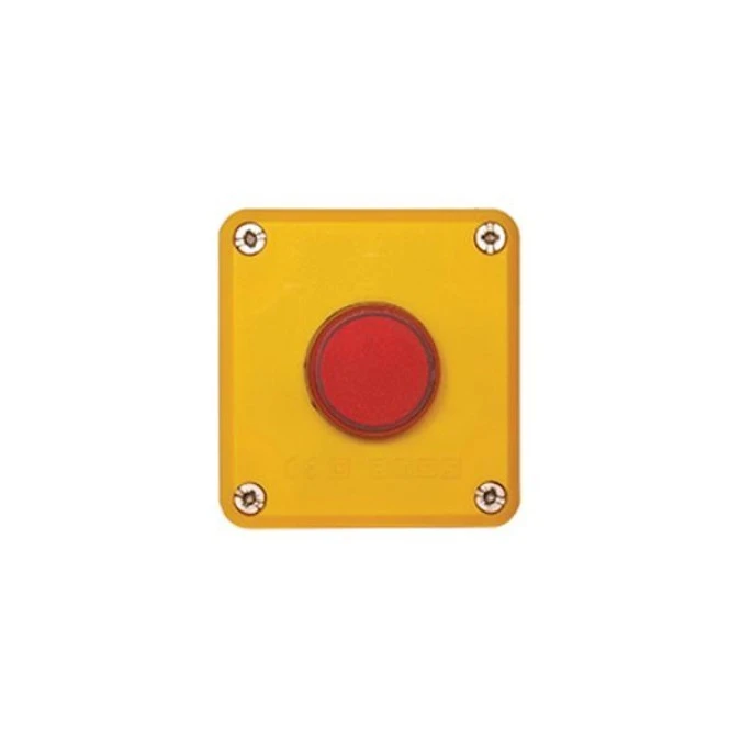 Kaseta sterownicza 1-otworowa, czarno – żółta, z tworzywa sztucznego, z wyposażeniem: – Lampka z tworzywa z kloszem płaskim NEF22TLD c, czerwona – Dławik PG13,5